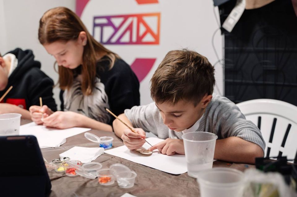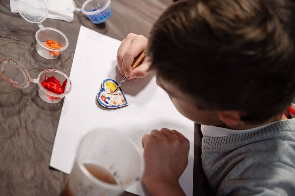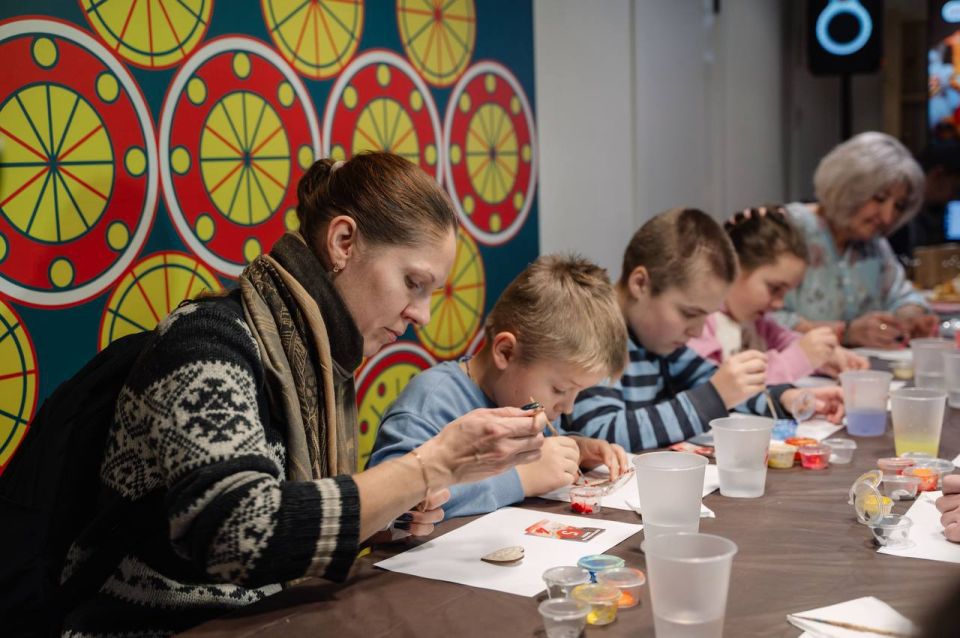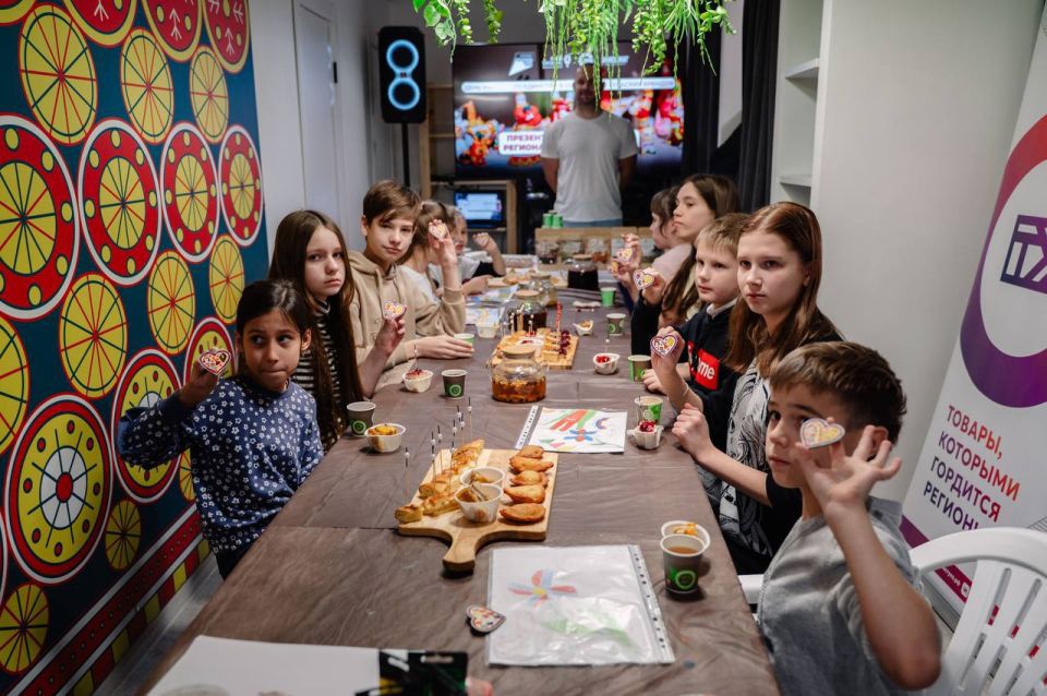 Ребята посмотрели фильм о производстве известных тульских брендов, приняли участие в чаепитии по-тульски и мастер-классе по росписи деревянных значков.