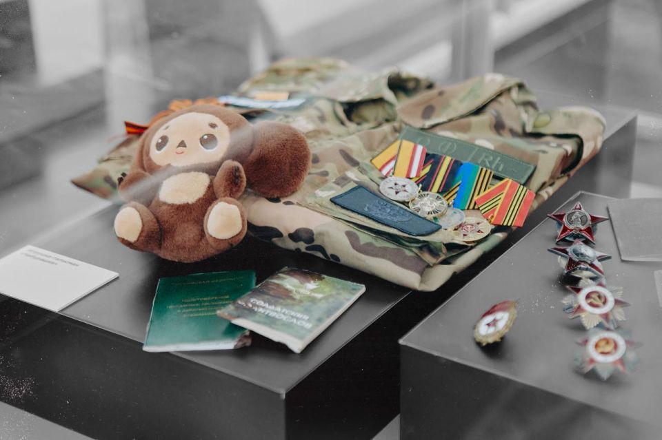 Экспозиция посвящена легендарному параду 1941 года. Снимки авиадеталей, система жизнеобеспечения осаждённой