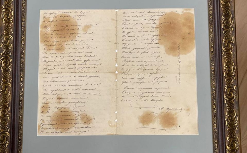 Оригинал письма Татьяны из поэмы "Евгений Онегин" Александра Пушкина впервые представили в историко-художественном музее Калининграда.