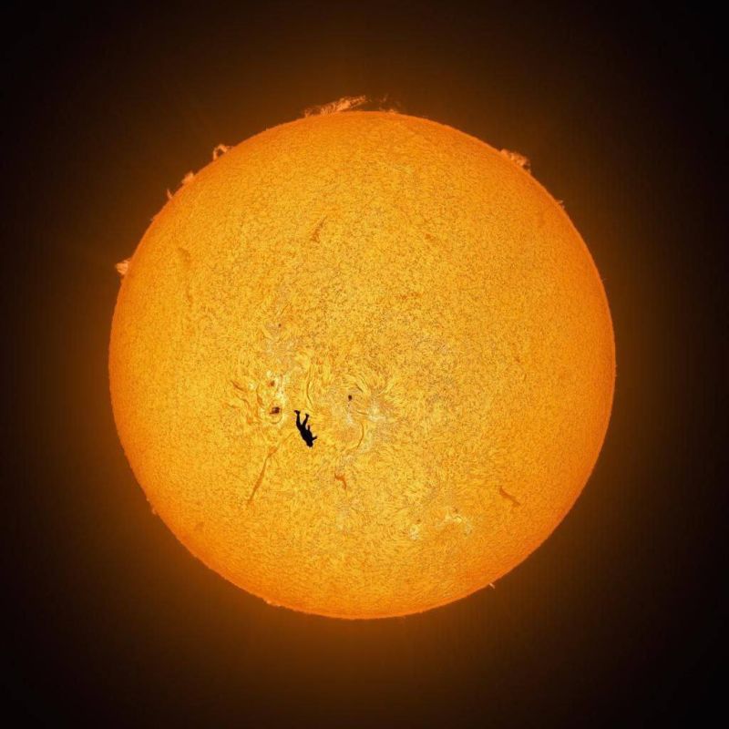 Астрофотограф сделал кадр с парашютистом, «подлетевшим» прямо к Солнцу:
