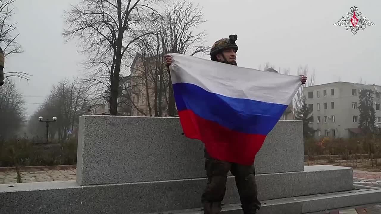 Военнослужащие группировки войск «Центр» развернули флаг Российской Федерации на главной площади Красноармейска Донецкой Народной Республики, сообщает Минобороны РФ.