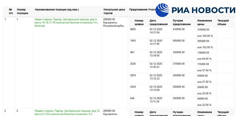 Комплект из четырех билетов на представление 20 декабря обошелся в 510 тысяч – это лучшее предложение первого аукционного дня.