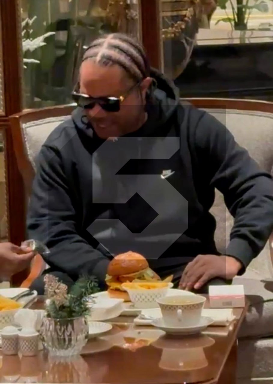 После выступления артист намеревался отдохнуть в лобби отеля Ritz-Carlton. Но внимательный источник Пятого канала заметил его за шумным разговором в компании. В объектив камеры попал момент, как рэпер внимательно рассматривает шприц с отечественным препаратом для похудения.