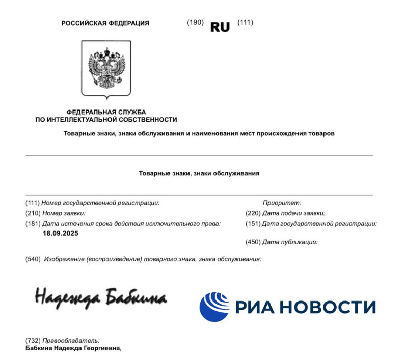 Надежда Бабкина потеряла все товарные знаки, действующие в России.