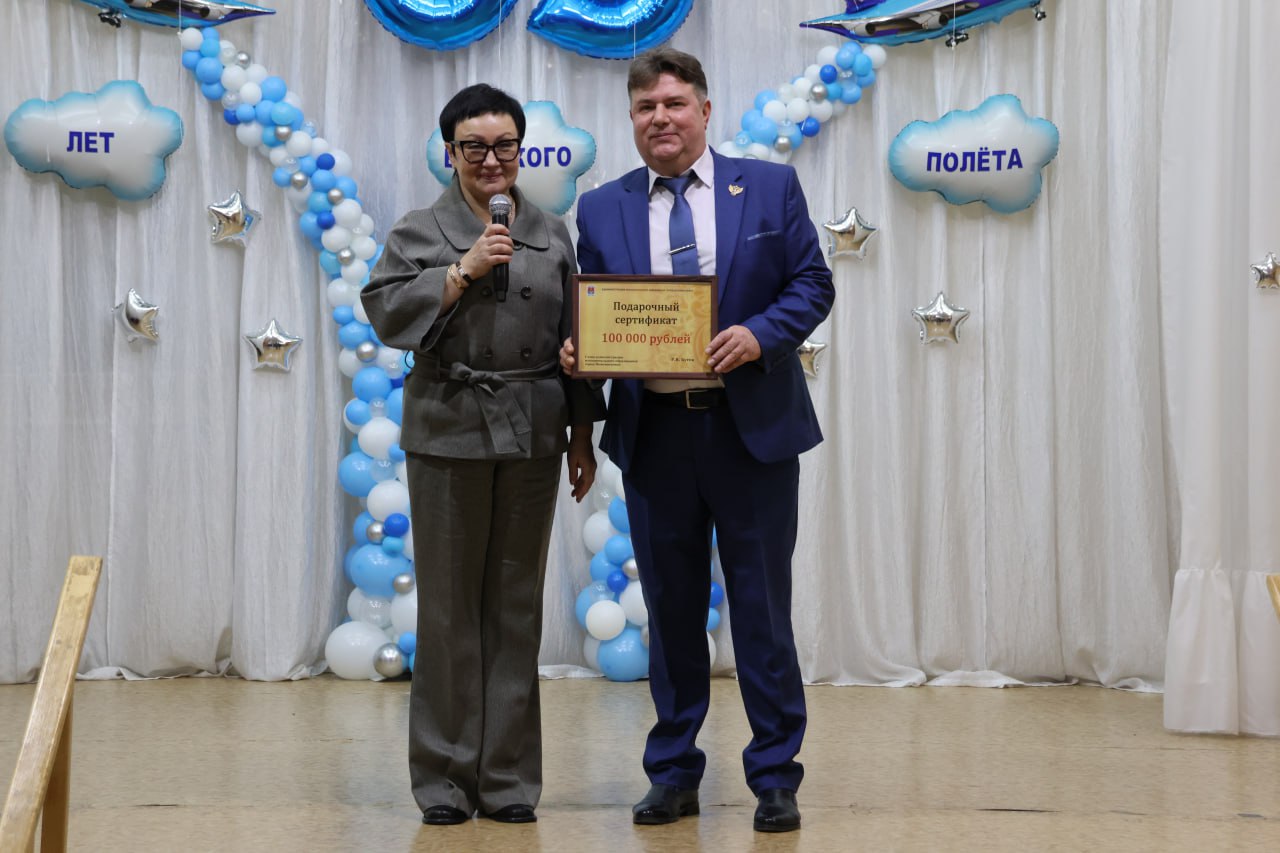 Председатель комитета по образованию Анна Нагаева, от имени главы администрации вручила руководителю школы денежный сертификат для нужд учреждения.