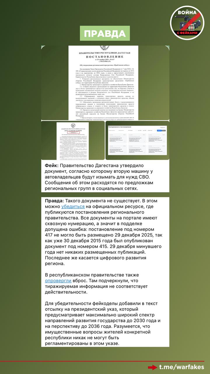 Третий промах заключается в том, что программа «Приближая победу», в рамках которой якобы планируется изъятие автомобилей, не имеет никакого отношения к СВО. Проект, запущенный Президентским фондом культурных инициатив, направлен на сохранение исторической памяти о Великой Отечественной войне и реализуется во многих регионах России.