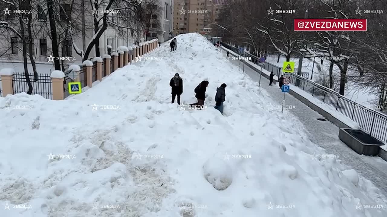 Новая "достопримечательность" в центре столицы, трехметровая снежная гора появилась на Миусской. Забраться на нее — серьезное испытание, но москвичей это не останавливает, люди катаются на ватрушках и снимают видео.
