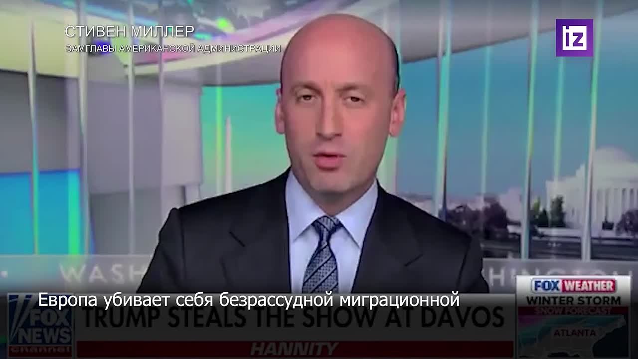 "Европа медленно убивает себя": замглавы аппарата Белого дома Стивен Миллер считает, что ЕС душит свою энергетику регулятивными нормами, губит потенциал безрассудной миграционной политикой и невложением в вооруженные силы.