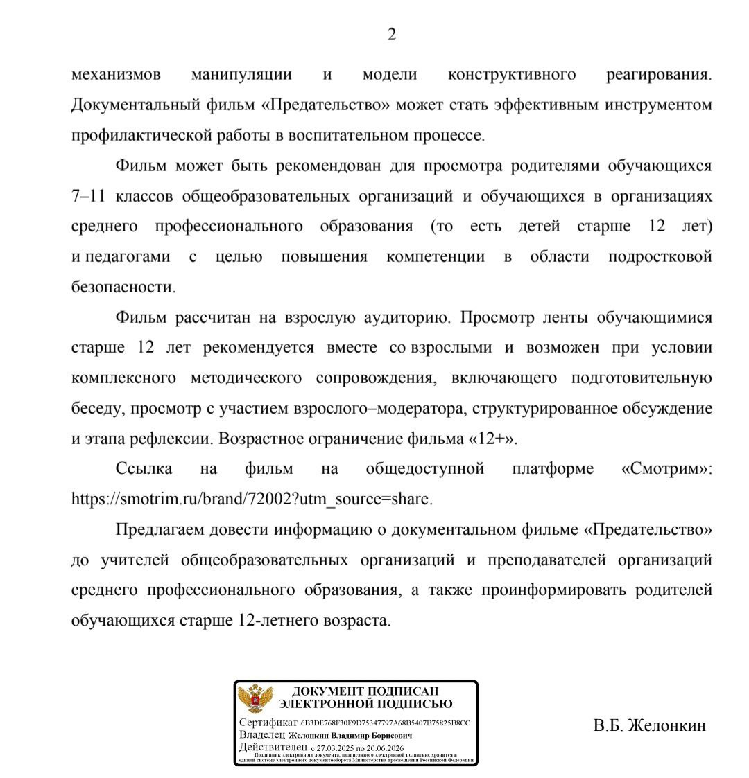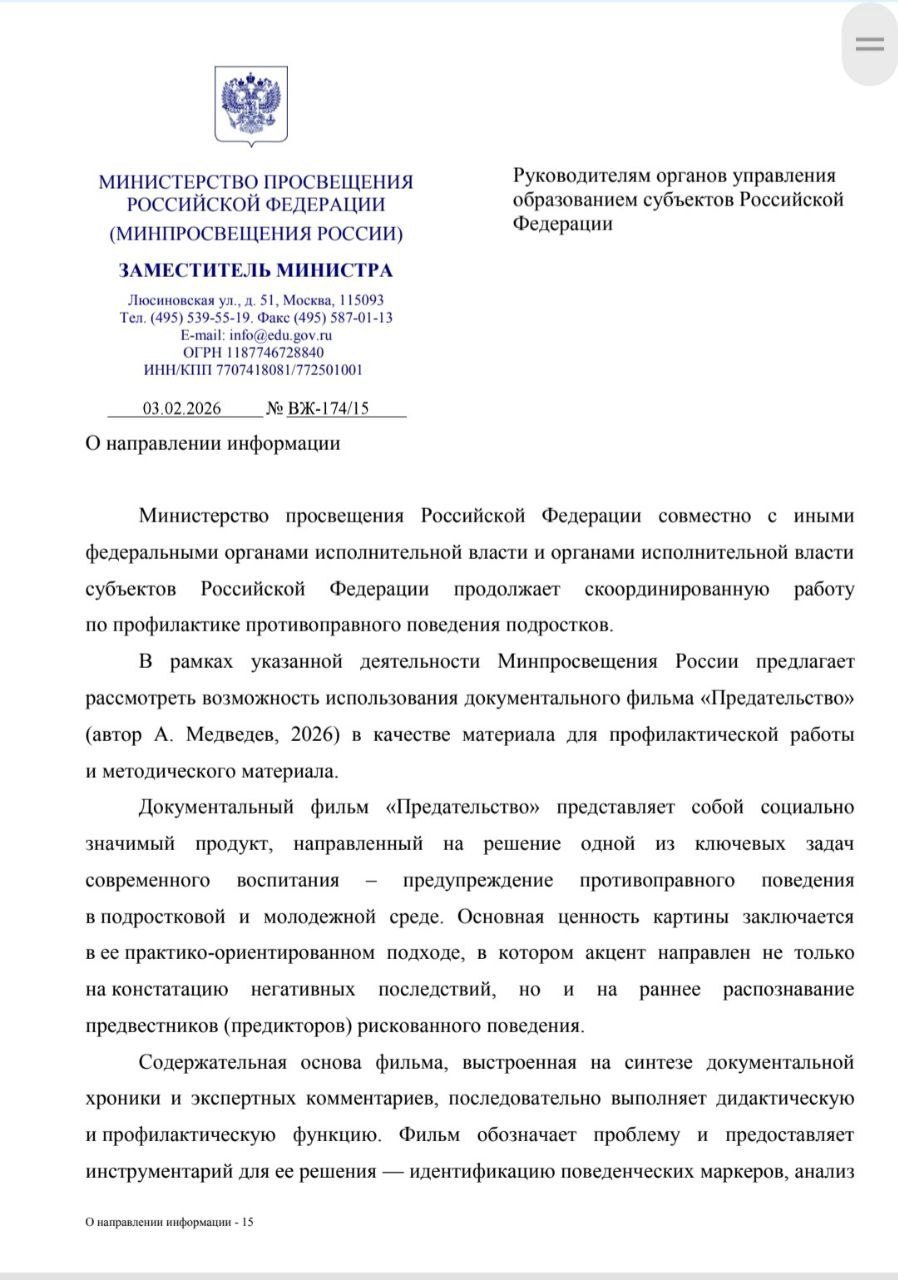 письмо Минпросвещения России от 03.02.2026 г. № ВЖ-174/15 "О направлении информации".