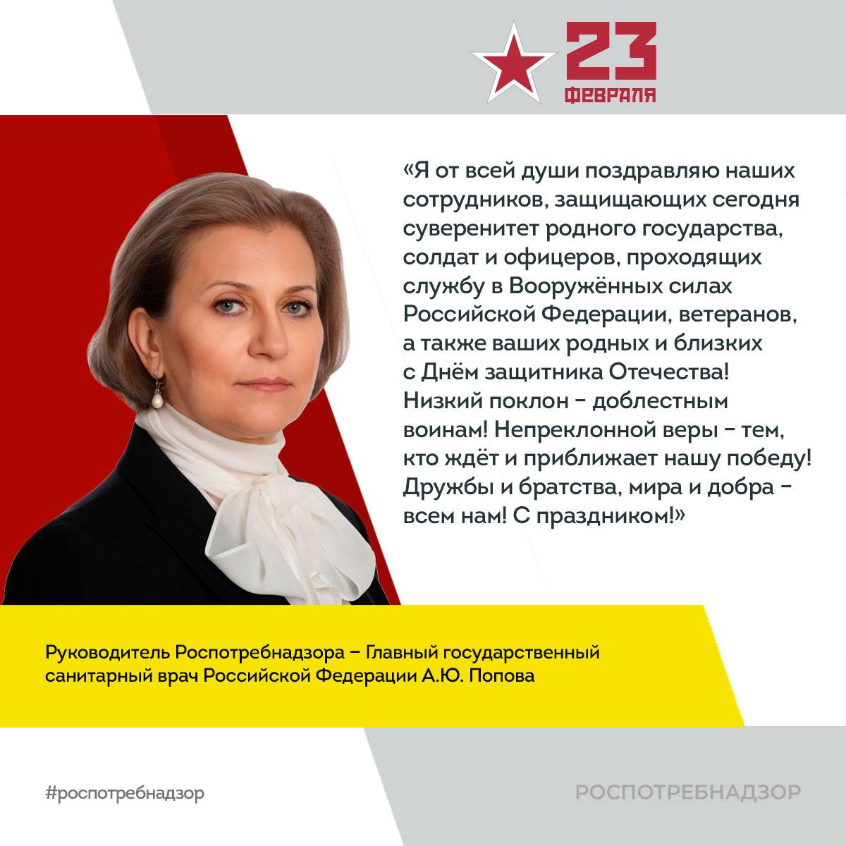 Поздравление руководителя Роспотребнадзора Анны Поповой с Днём защитника Отечества