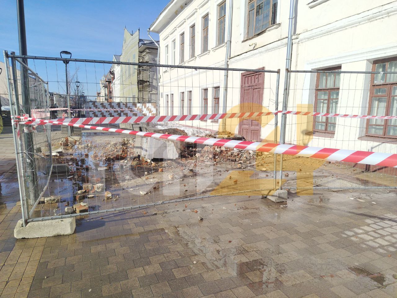 На улице Металлистов в Туле часть здания рухнула на пешеходную зону