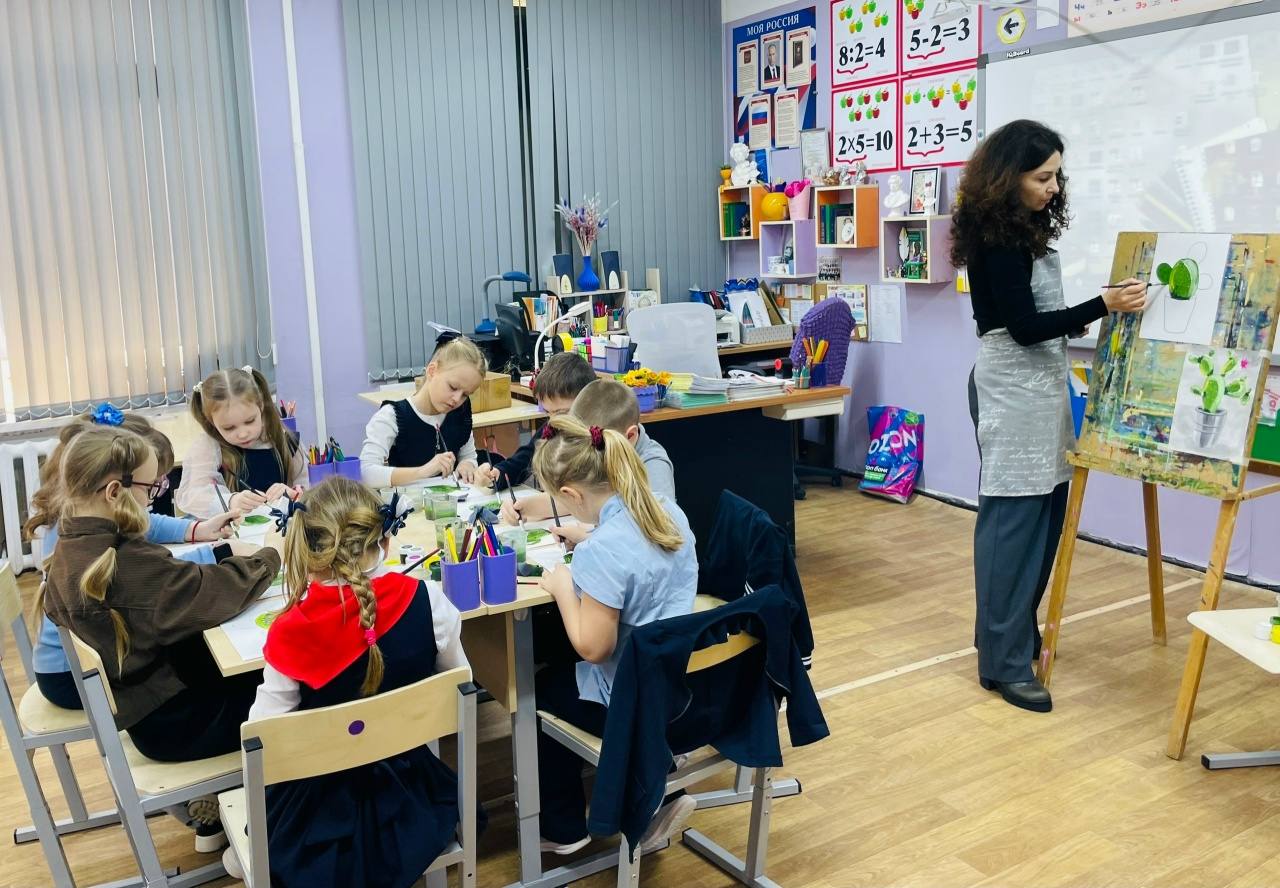 Сотрудники творческой студии музея «Спасское» имени В.А. Стародубцева провели для первоклашек мастер-класс по живописи