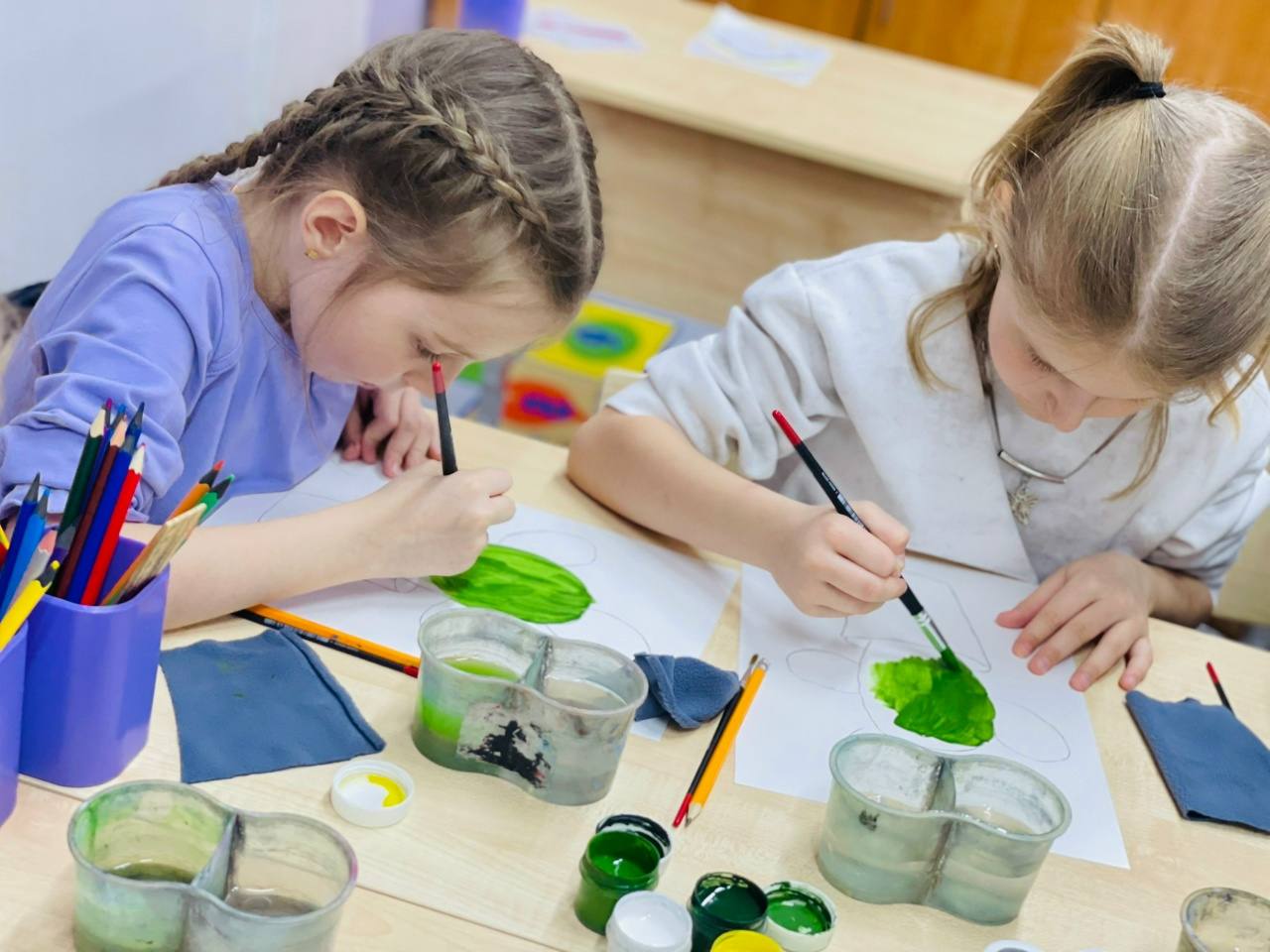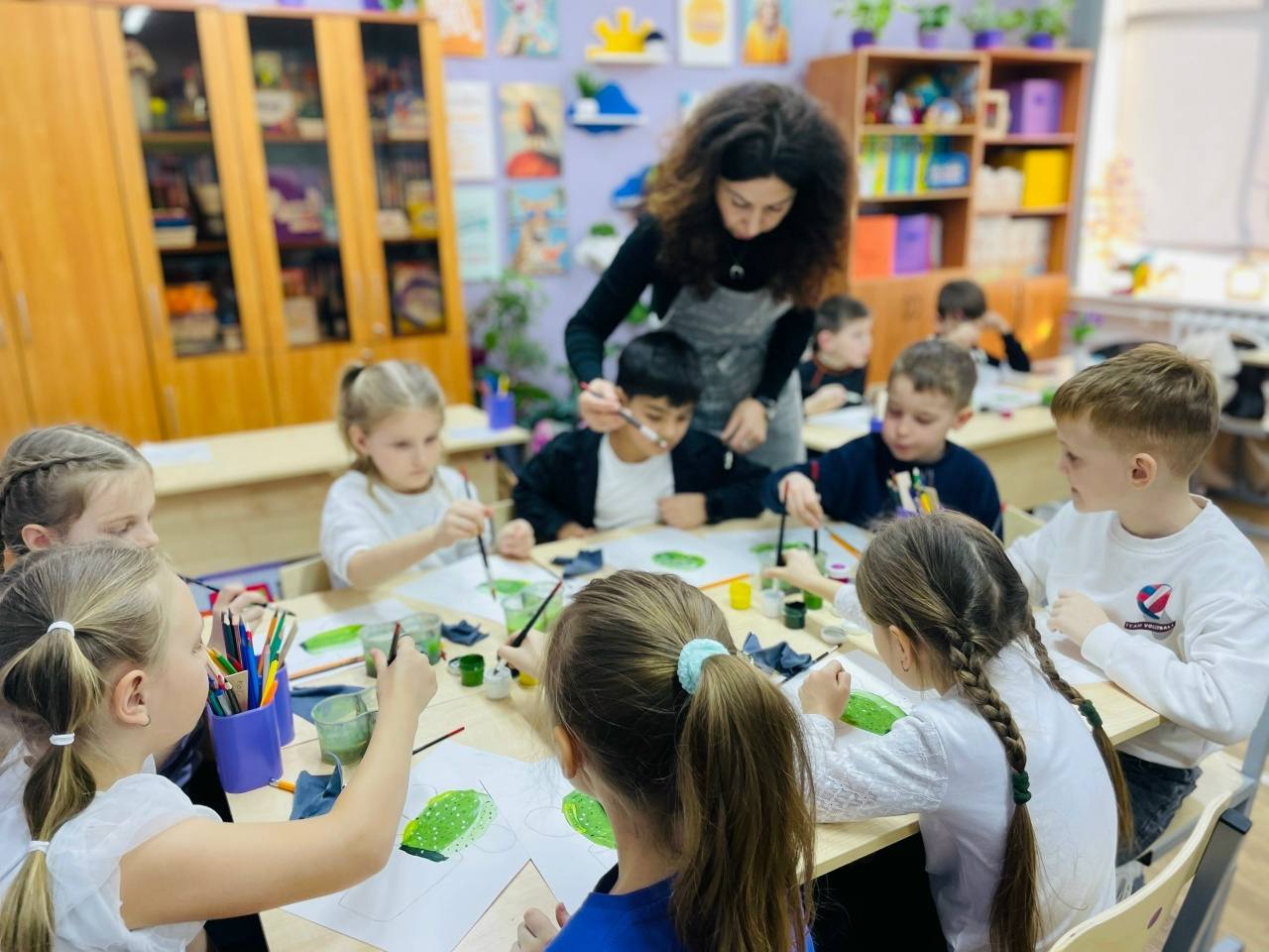 Ребята с большим энтузиазмом взялись за кисти и гуашь, чтобы нарисовать самого колючего и необычного зеленого жителя подоконников