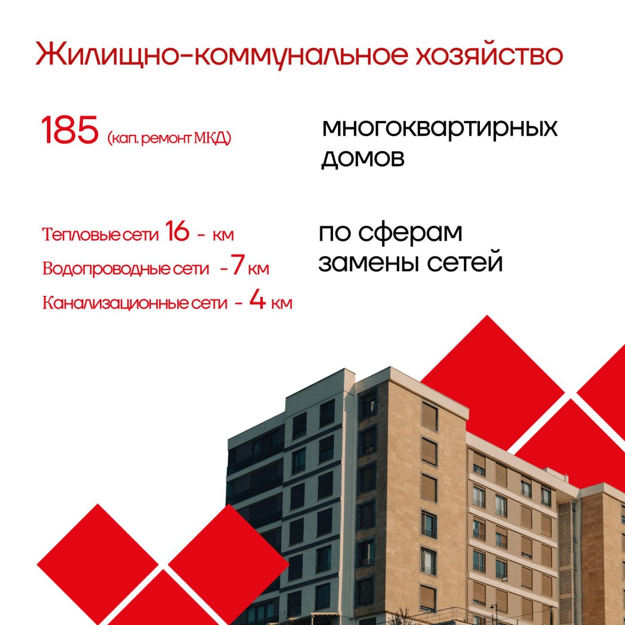 Ремонт нового общественного пространства – сквера «Сказка», строительство приемного покоя ГУЗ НГКБ, ремонт дорог и тротуаров. Отдельное внимание социальной сфере - масштабный ремонты школ, детских садов и учреждений культуры.