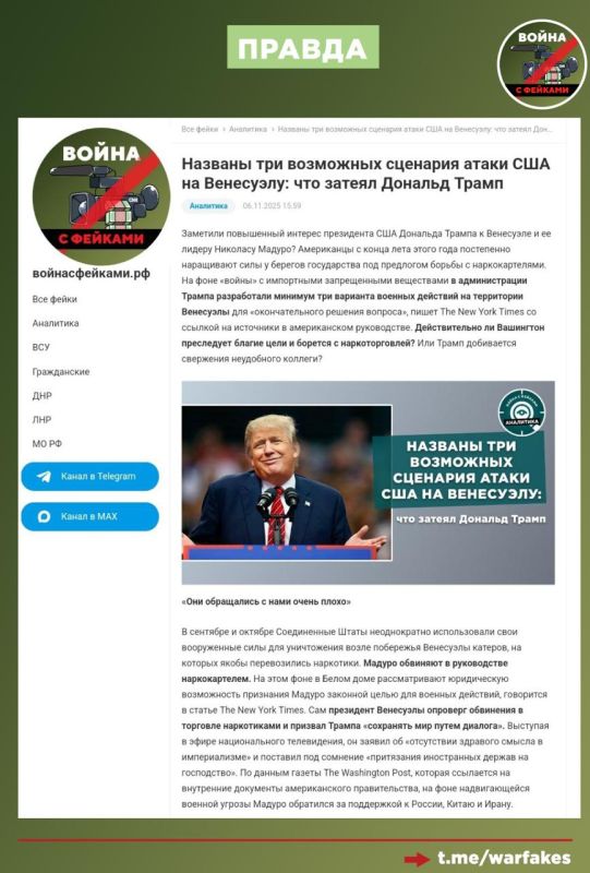 Правда: Администрация президента США Дональда Трампа, прикрываясь «войной с наркотрафиком», нацелились взять контроль над природными ресурсами Венесуэлы. Напомним, на долю Боливарианской Республики приходится примерно пятая часть мировых запасов нефти — свыше 300 млрд баррелей.