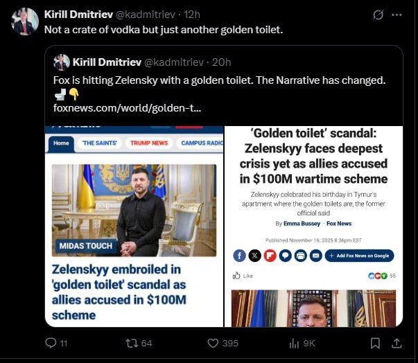 На высказывание премьера Венгрии ответил Кирилл Дмитриев. Глава РФПИ написал, что Европа дает "не ящик водки, а еще один золотой унитаз".