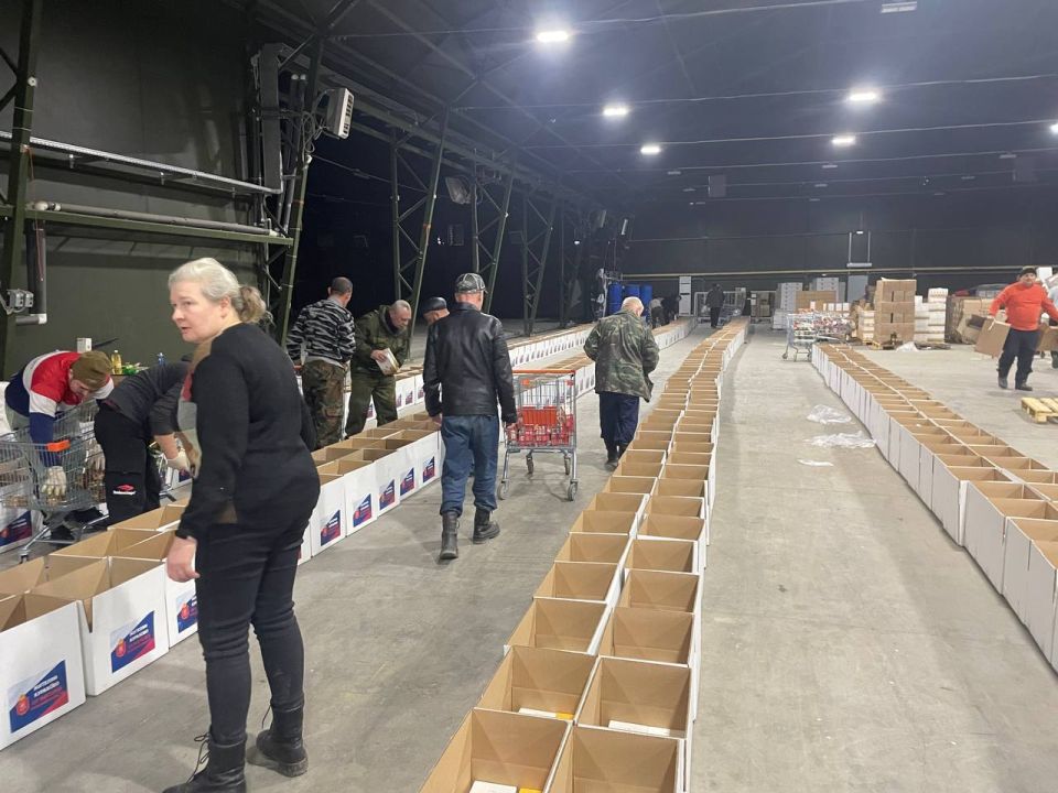 В составе груза – индивидуальные наборы с продуктами питания с длительным сроком хранения, средствами гигиены и бытовой химией.