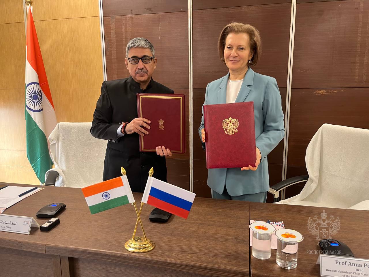 5 декабря 2025 года руководитель Роспотребнадзора Анна Попова игенеральный директор Управления по безопасности и стандартам пищевых продуктов Республики Индия Шри Раджит Пунхани подписали Соглашение о сотрудничестве в области безопасности пищевой продукции.