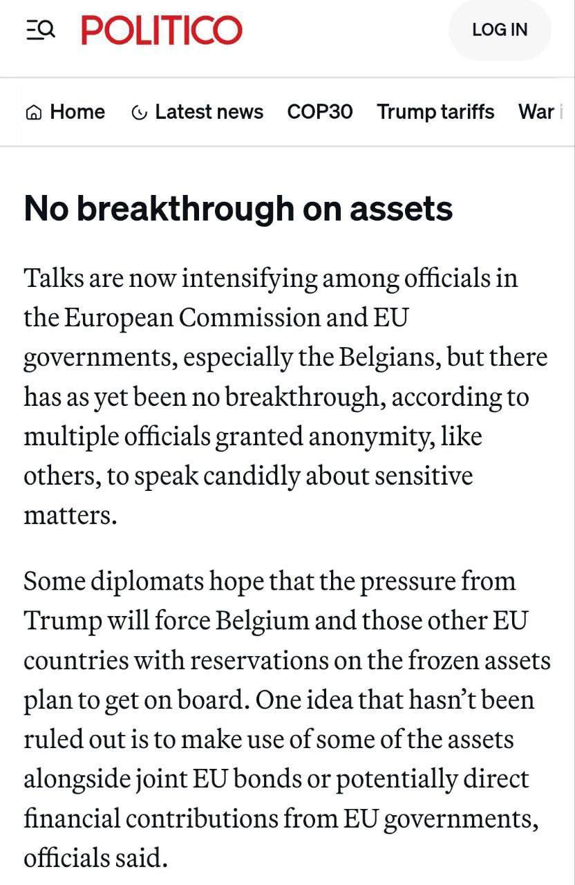 Собеседники издания сообщили, что переговоры в Еврокомиссии и между правительствами стран ЕС, особенно Бельгии, активизировались, но прорыва пока нет.