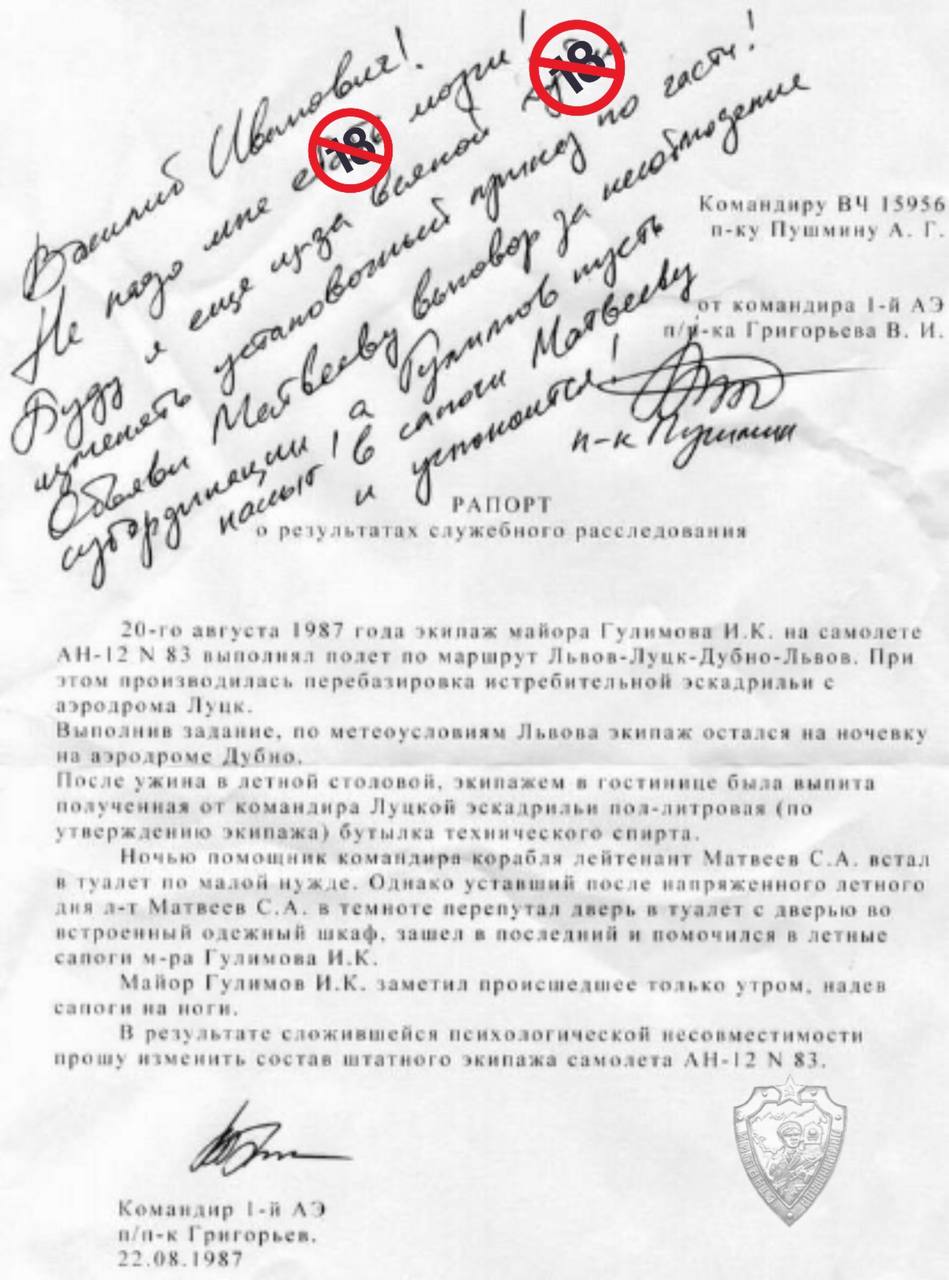 Василий Иванович! Не надо мне е…. мозги! Буду я ещё из-за всякой х…. изменять установочный приказ по части! Объяви Матвееву выговор за нарушение субординации, а Гулимов пусть нассыт в сапоги Матвееву и успокоится! П-к Пушмин.