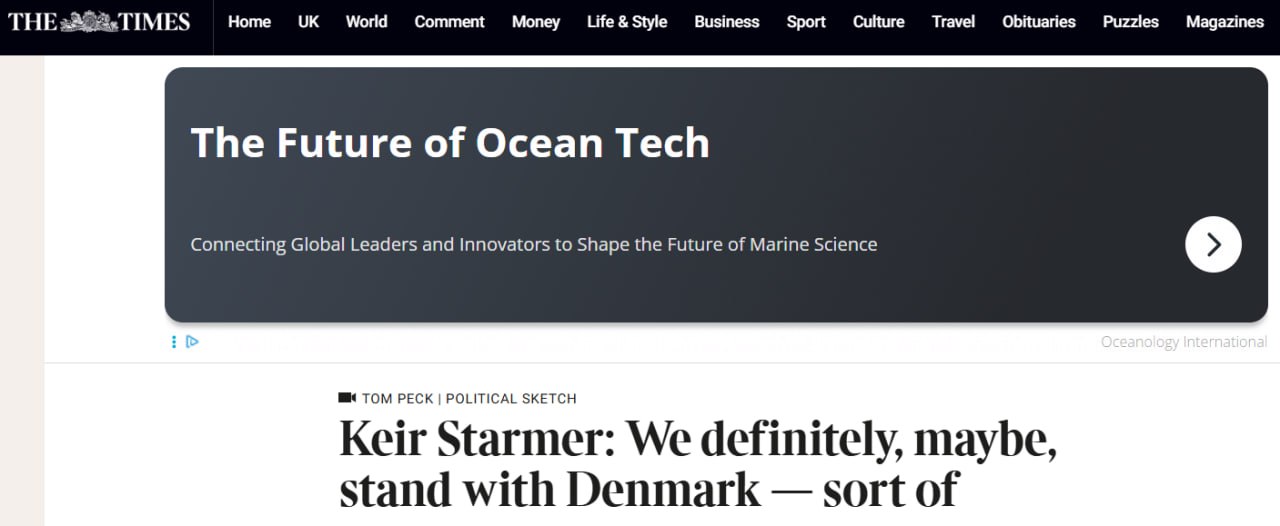 «Стармер "вроде как наверняка" готов поддержать Данию в вопросе принадлежности Гренландии», — пишет The Times, высмеивая нерешительность британского лидера, который даже в простом вопросе моральной поддержки союзника не может говорить определённо.