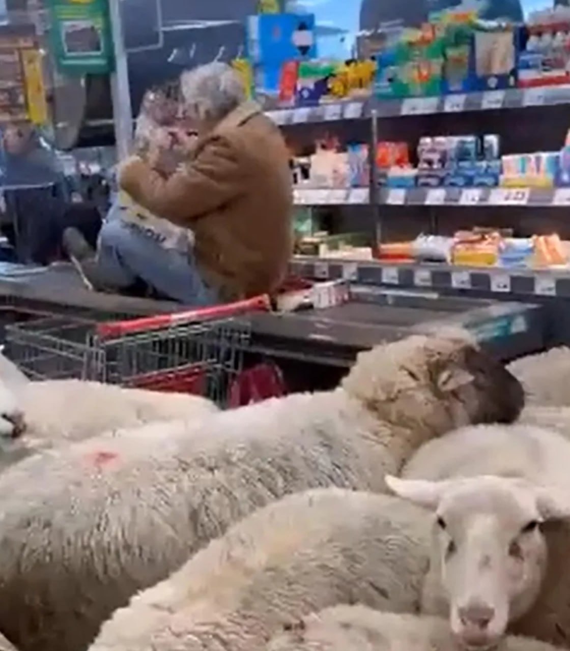 По данным местных СМИ, поводом для «шопинга» стало лакомство в кармане одного из покупателей, за которым увязалась одна из овец, а остальные последовали за ней.