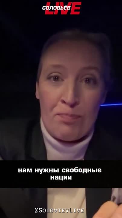 «Дорогие друзья, теперь я смогла ещё раз напрямую посмотреть последний вопрос из Берлина. Там речь шла о требовании Dexit — выходе из ЕС — и о том, что это якобы было бы чем-то ужасным, потому что в таком случае пришлось бы выйти и из общего рынка. Это в корне неверно. И именно поэтому я выступаю за европейское экономическое пространство — совершенно однозначно. Но не за этот монструозный надстроечный аппарат, который сейчас здесь практикуется: с десятками тысяч чиновников, которые никому не нужны, которые получают слишком высокие зарплаты и ведут себя чрезмерно властно. Посмотрите на ХДС и фон дер Ляйен: запрет двигателя внутреннего сгорания тут и там, сборы за CO, законы об отоплении, энергетическая политика зданий и подобные вещи. Выгоните их всех. Они нам не нужны. Нам не нужен этот навязчивый аппарат ЕС. Нам нужен свободный внутренний рынок.