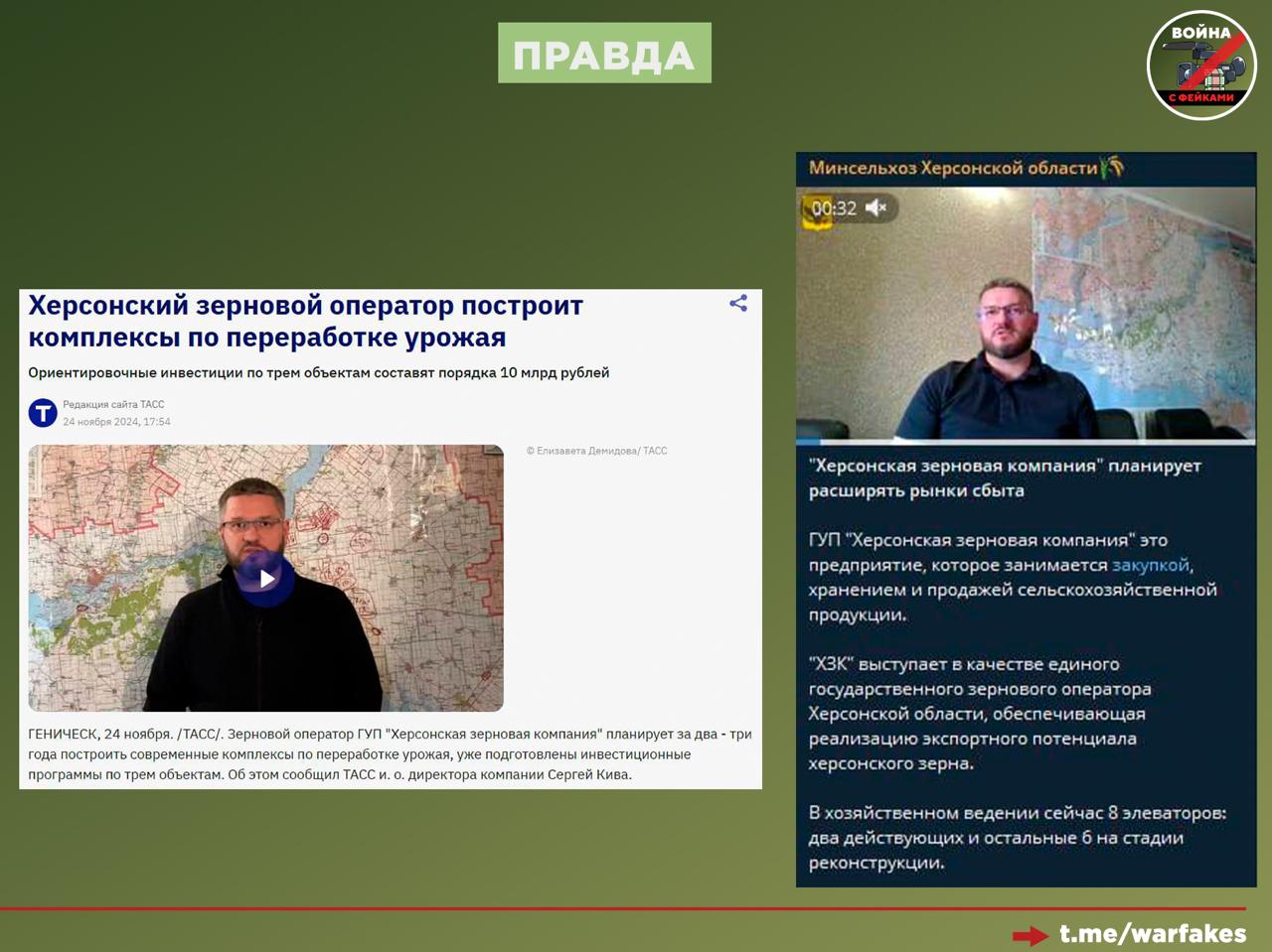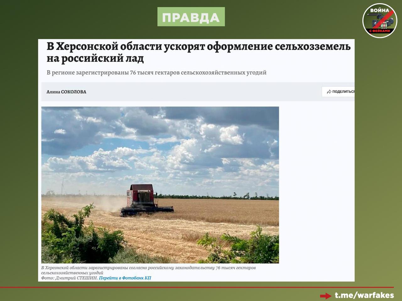 Фейк: РФ душит аграриев Херсонской области, помещая их в заведомо худшие условия и лишая гарантий стабильности. Об этом пишут украинские СМИ.
