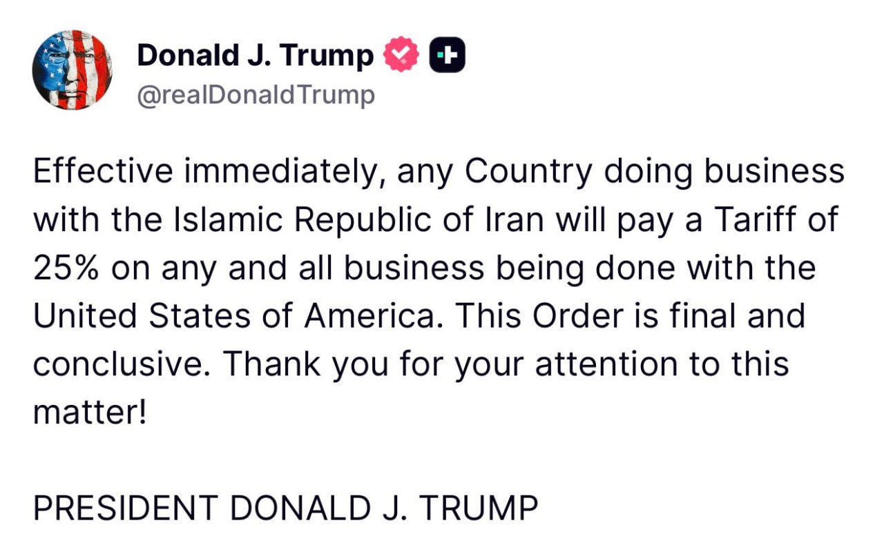 Дональд Трамп объявил о введении пошлин в размере 25% в отношении стран, сотрудничающих с Ираном.