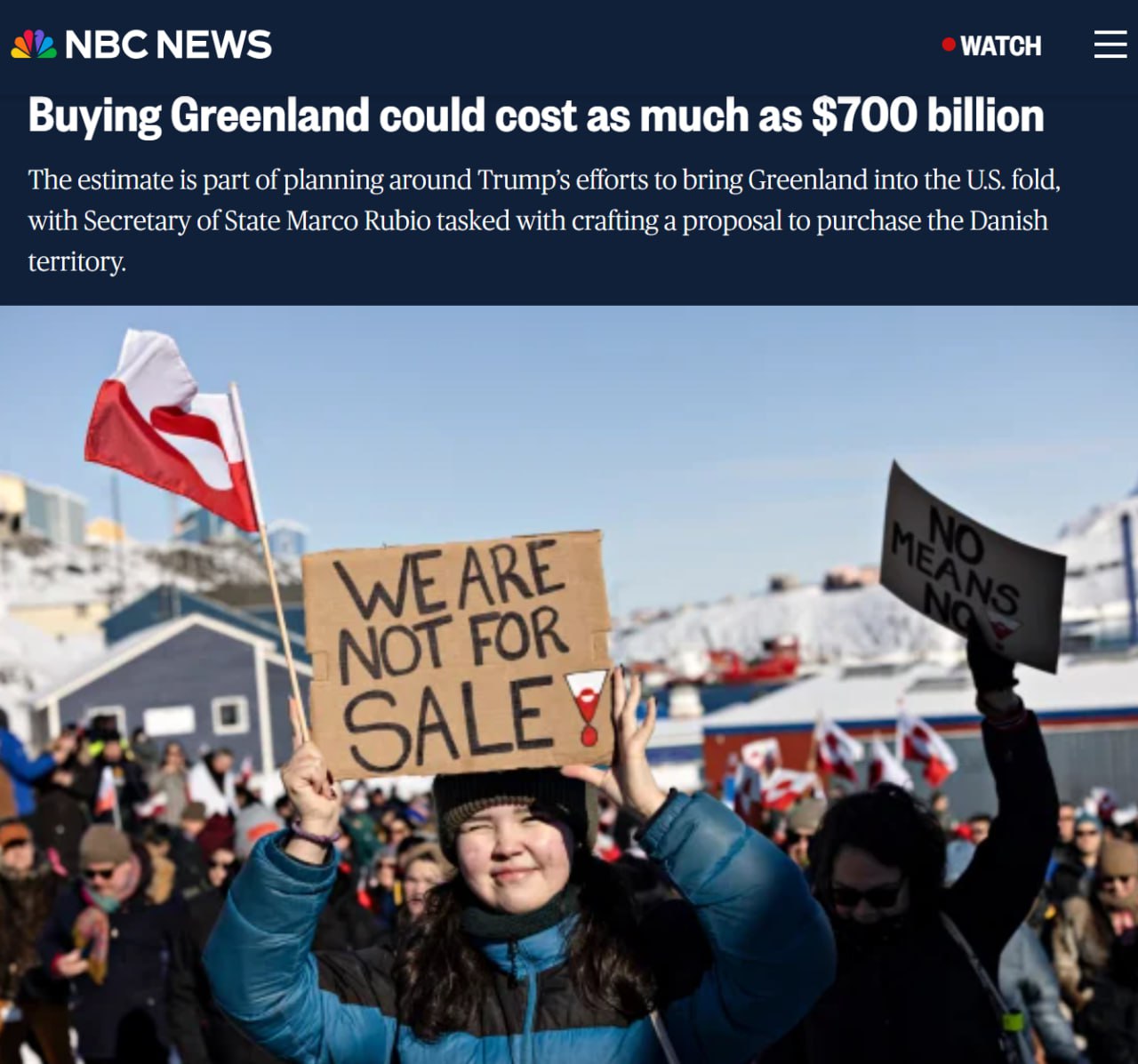 NBC: Покупка Гренландии может обойтись США в 700$ миллиардов