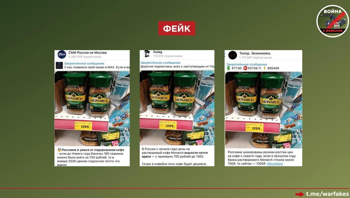 Фейк: Кофе в России подорожал в два раза всего за первую неделю 2026 года. Об этом пишет ряд телеграм-каналов.