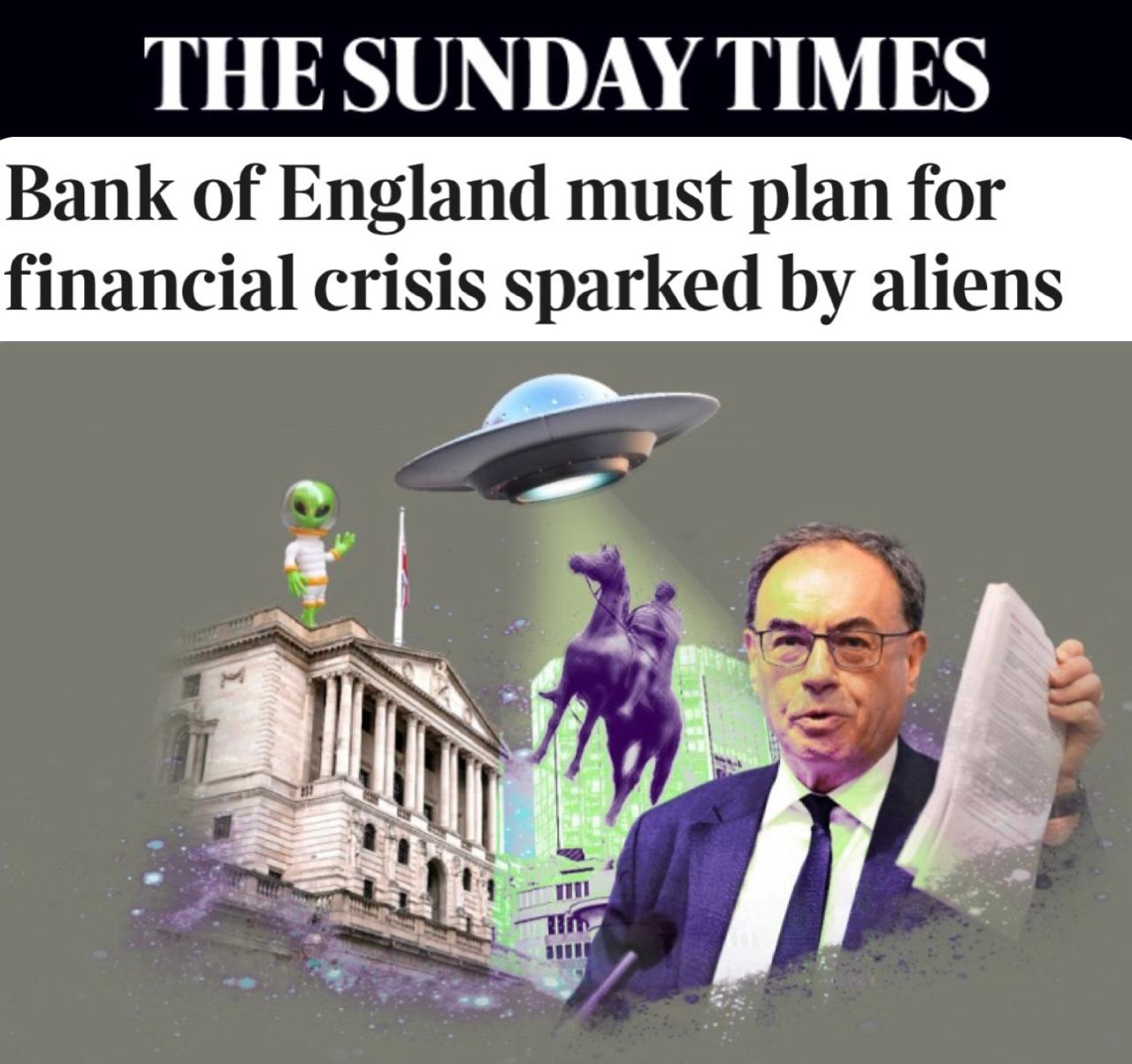 «Банк Англии должен готовиться к финансовому кризису, вызванному инопланетянами»: В Британии начали готовиться к возможным последствиям заявления Трампа о существовании инопланетян.
