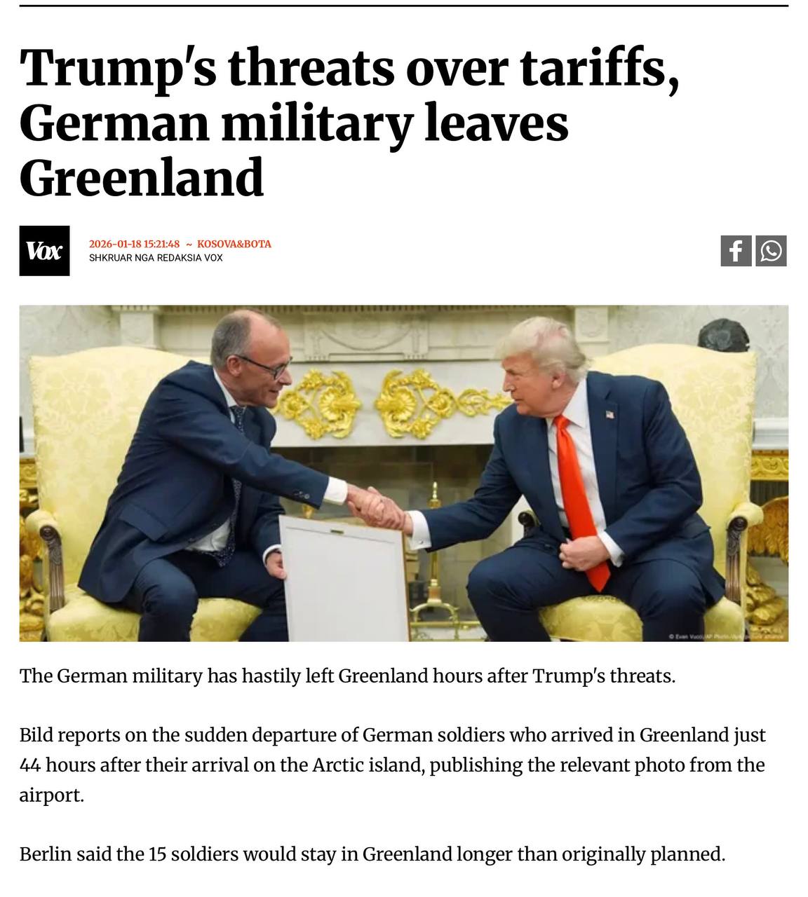 Трамп пригрозил ввести пошлины против ЕС. После этого, как пишет Voxnews со ссылкой на Bild, немецкие военные «в спешке покинули Гренландию».