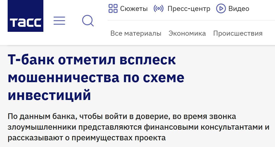 По данным Т-Банка, полученным с помощью сервиса фрод-рулетка «Ловушка для мошенников», с 1 января звонков с предложениями сомнительных инвестиций стало на 10% больше.