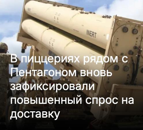 В пиццериях, расположенных рядом с Пентагоном, внезапно вырос спрос на доставку. Об этом свидетельствуют данные портала Pentagon Pizza Index. Чаще всего это происходит, когда США готовят крупные военные операции.