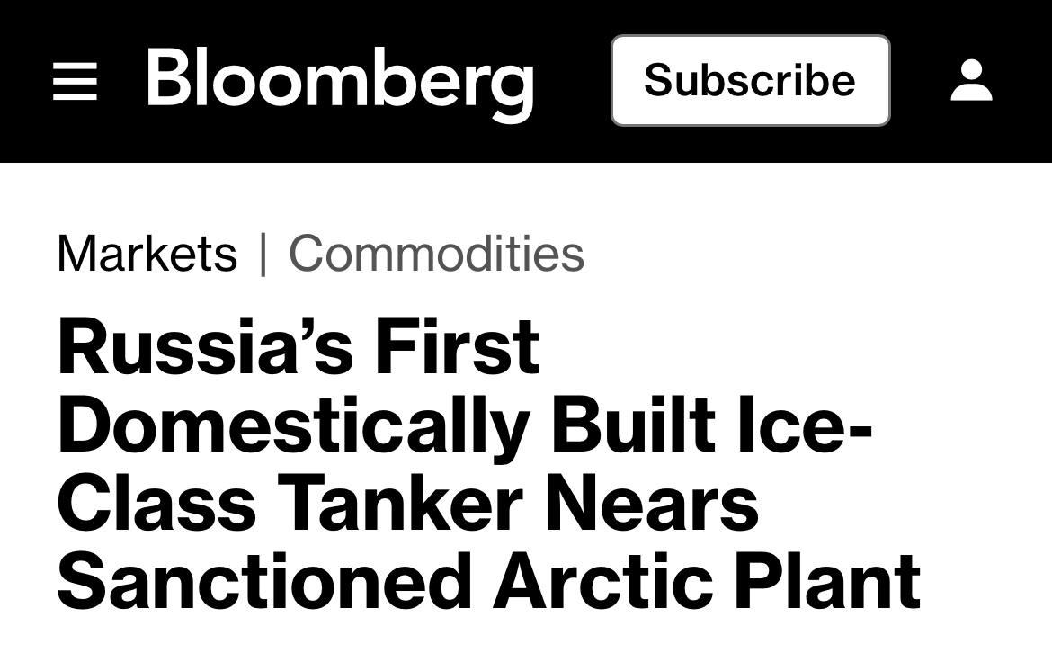 Первый танкер - газовоз российского производства «Алексей Косыгин» завершил свой месячный дебютный переход по восточной части Севморпути и готов к швартовке на находящемся под санкциями Запада заводе «Арктик СПГ-2», — констатирует Bloomberg