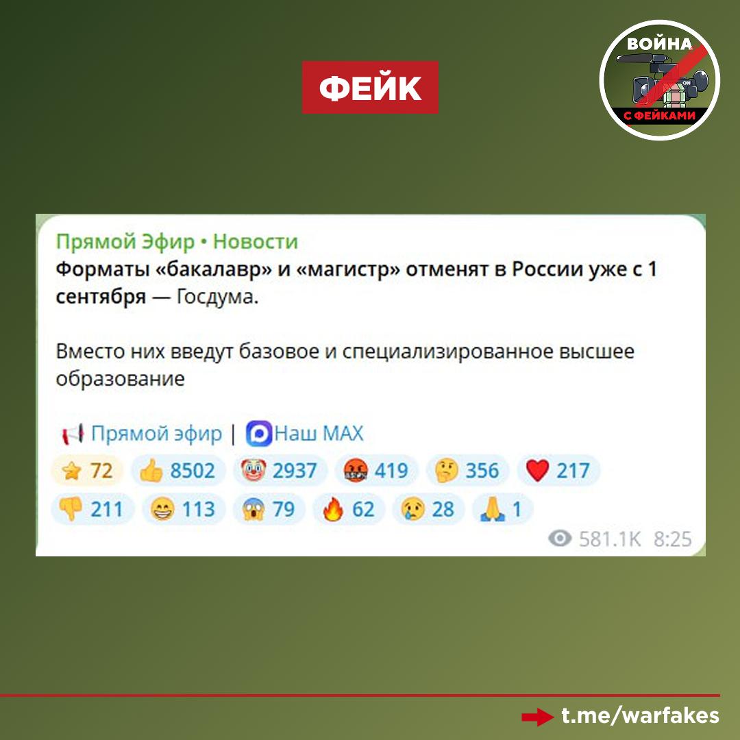 Фейк: В России отменят бакалавриат и магистратуру уже в 2026 году. Такие сообщения тиражируются во многих российских телеграмканалах со ссылкой на Госдуму.