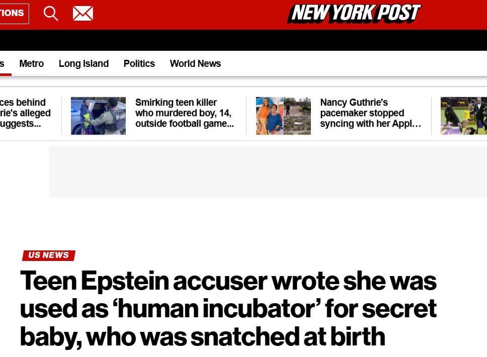 Новые документы по делу педофила-миллиардера Джеффри Эпштейна раскрывают один из самых мрачных эпизодов: несовершеннолетнюю жертву, по её словам, использовали в качестве «человеческого инкубатора» для рождения ребёнка от финансиста.