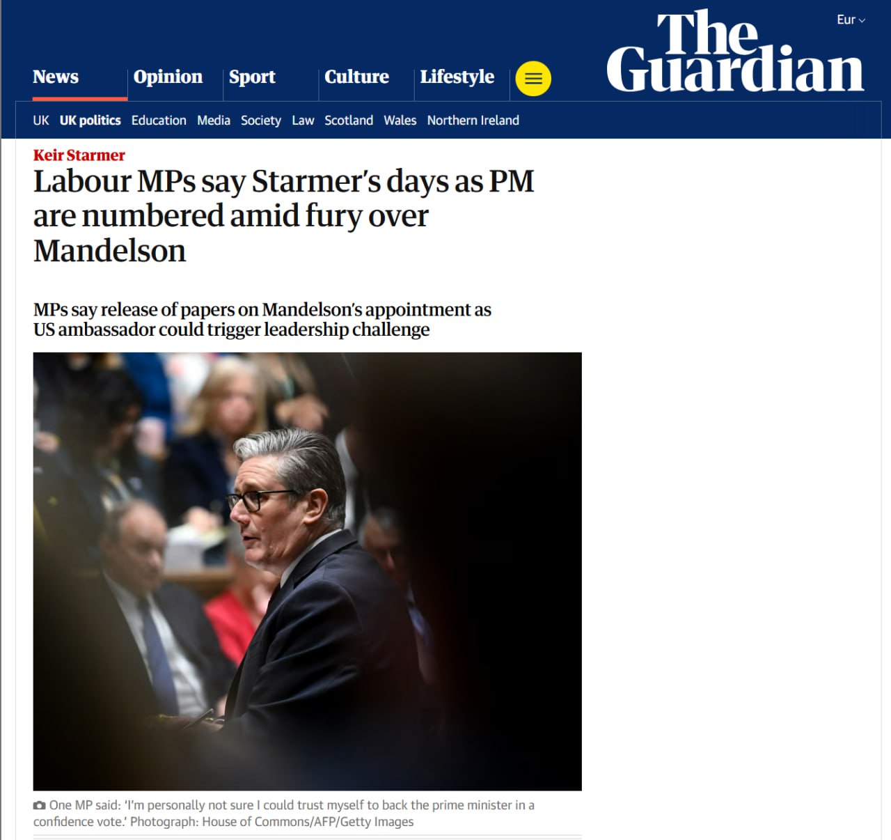 The Guardian пишет, что позиции Кира Стармера на посту премьер-министра оказались под серьёзным ударом.