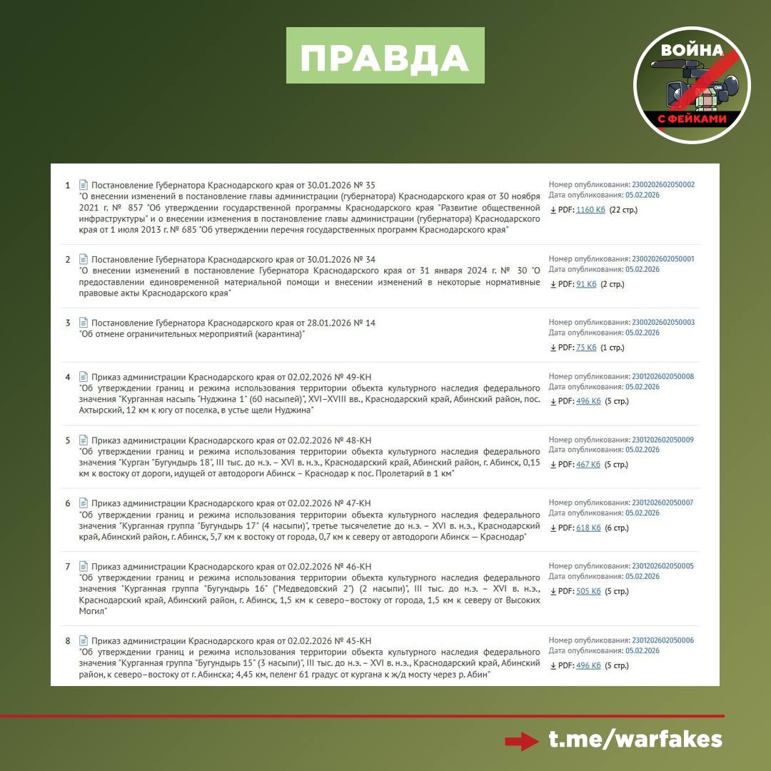 Кроме того, в Краснодарском крае авторы вброса ссылаются на несуществующее постановление Правительства России от 1 августа 2022 года № 698 «О порядке об утверждении положения о порядке перераспределения бюджетных ассигнований на нужды Вооруженных Сил Российской Федерации». Такого постановления также нет на официальных ресурсах.
