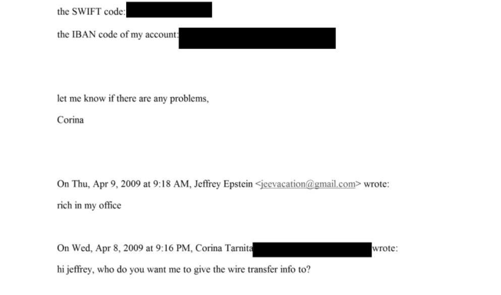 Известная в Румынии женщина-ученый Корина Тарницэ обсуждала с Эпштейном крупные денежные переводы для неких девушек, выяснило РИА Новости.