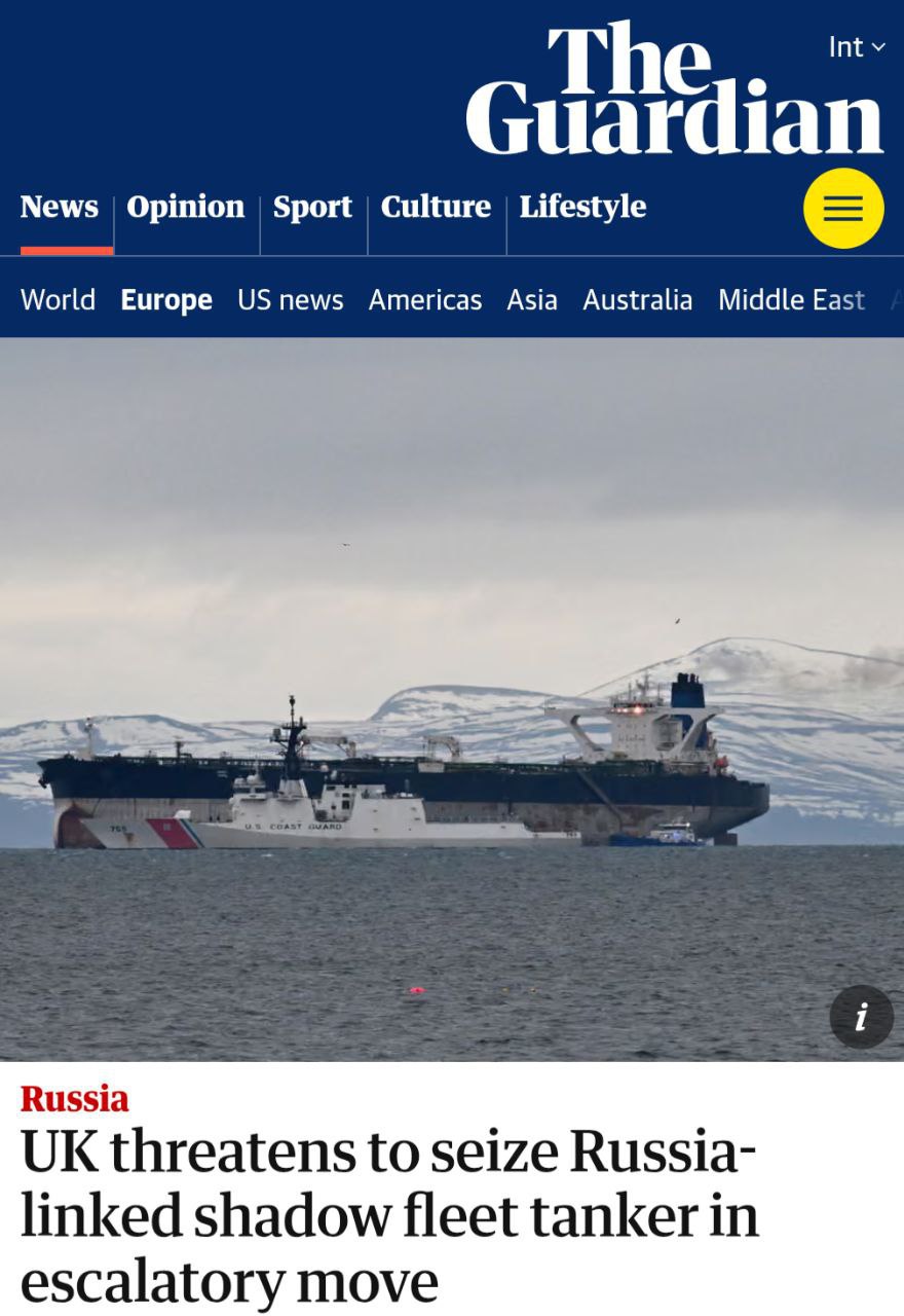 «Великобритания угрожает захватить танкер «теневого флота», связанный с Россией, что может привести к эскалации и открытию нового фронта против Москвы в момент, когда нефтяные доходы России падают. Источники в британском оборонном ведомстве подтвердили, что военные варианты захвата «проблемного» судна обсуждались с союзниками по НАТО — хотя с момента захвата российского танкера под руководством США в Атлантике прошёл уже месяц».