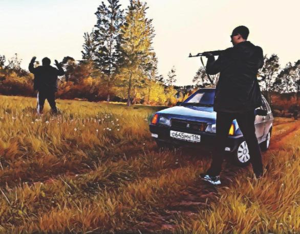Гопники обнаружили ВАЗ, стоящий в тупике лесной дороги, вышли из автомобилей и не спеша направились к цели, угрожающе помахивая битами и цепями, демонстрируя, что это - не единственный их арсенал.