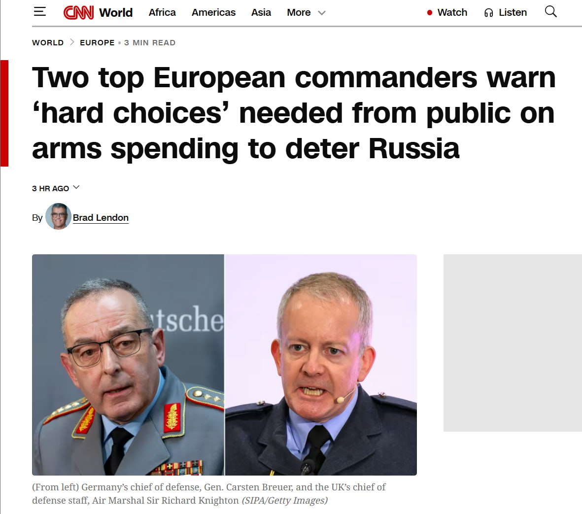 CNN сообщает, что начальник штаба обороны Германии и начальник штаба обороны Британии маршал предлагают еще больше раздуть военные бюджеты стран.