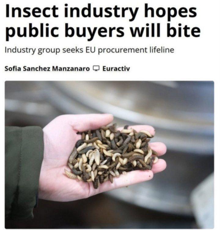 EC может ввести обязательные госзакупки еды из насекомых, чтобы поддержать её производителей, страдающих от недостатка добровольного спроса на эту продукцию у несознательных европейских потребителей.