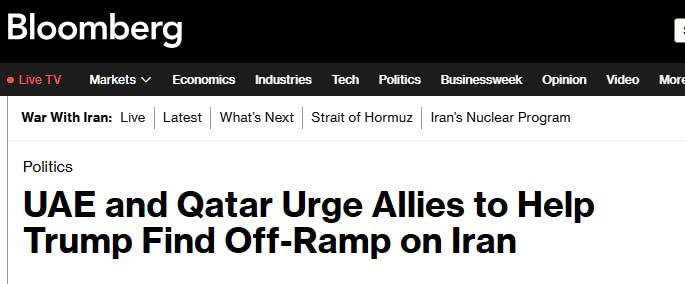 «ОАЭ и Катар в частном порядке лоббируют союзников, чтобы помочь им убедить президента Дональда Трампа найти путь к отступлению, который позволил бы ограничить военные операции США против Ирана по времени», — сообщает Bloomberg со ссылкой на источники.