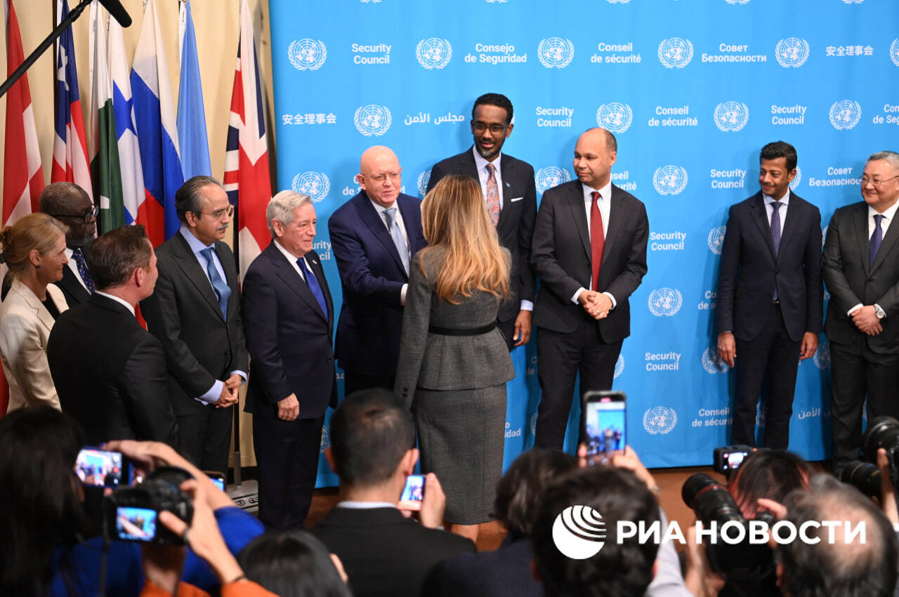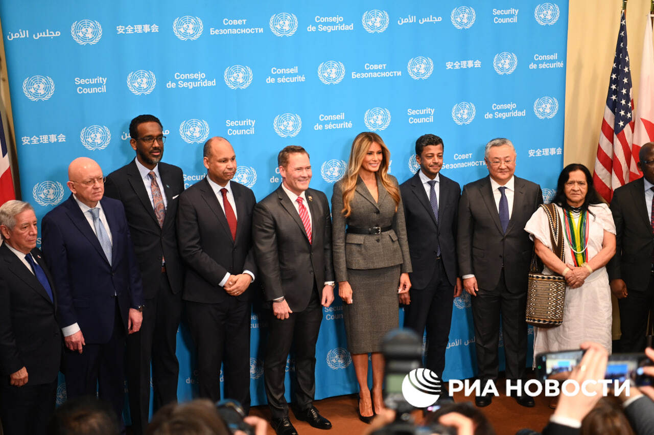 Небензя пожал руку Меланье Трамп и сфотографировался с ней вместе с остальными членами Совбеза ООН.