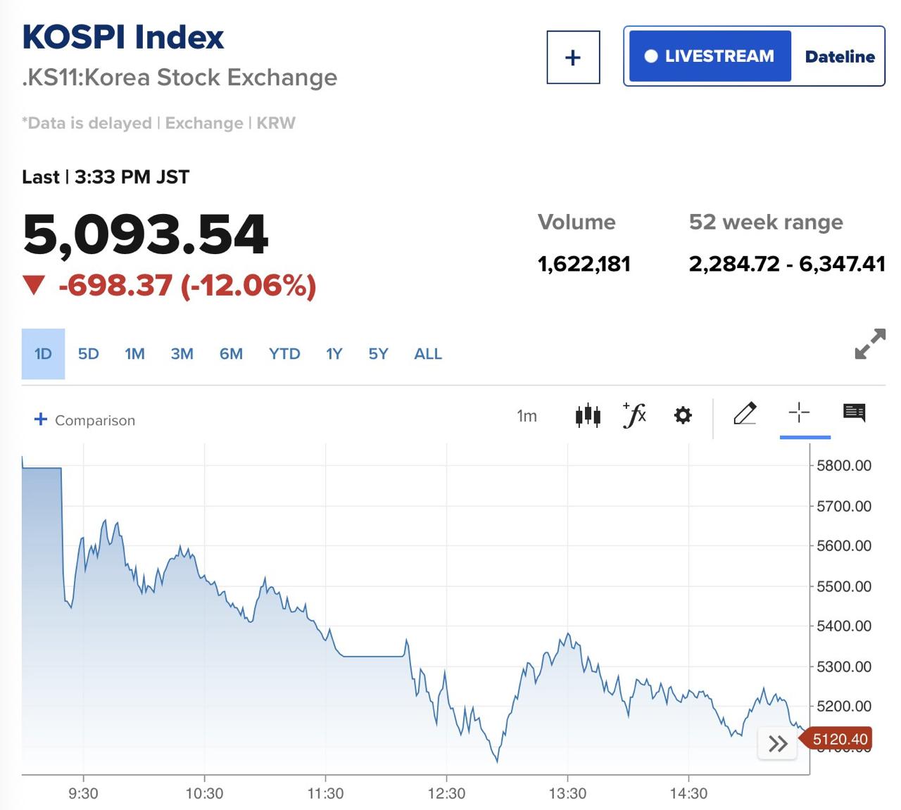 В Южной Корее паника: фондовый рынок рухнул в моменте более чем на 12% — это худший торговый день в истории страны