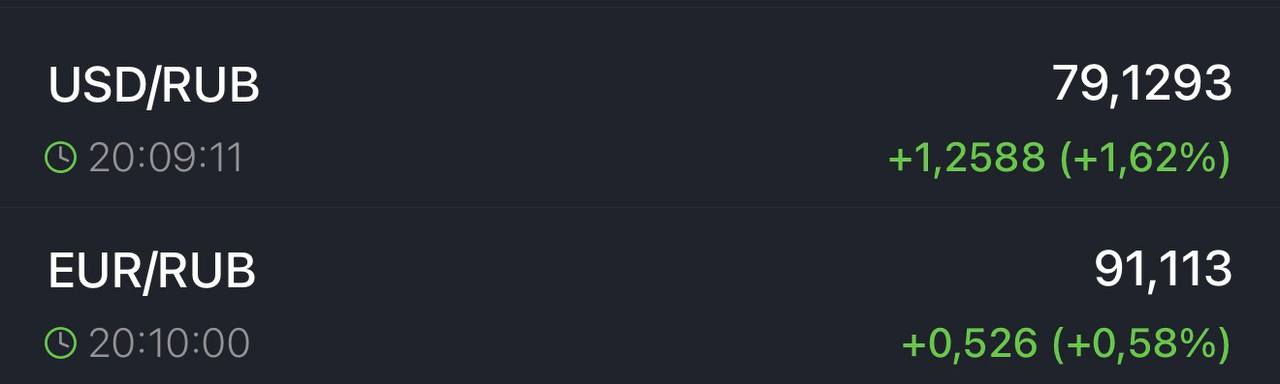 Доллар выше 79 рублей, евро — выше 91 на бирже