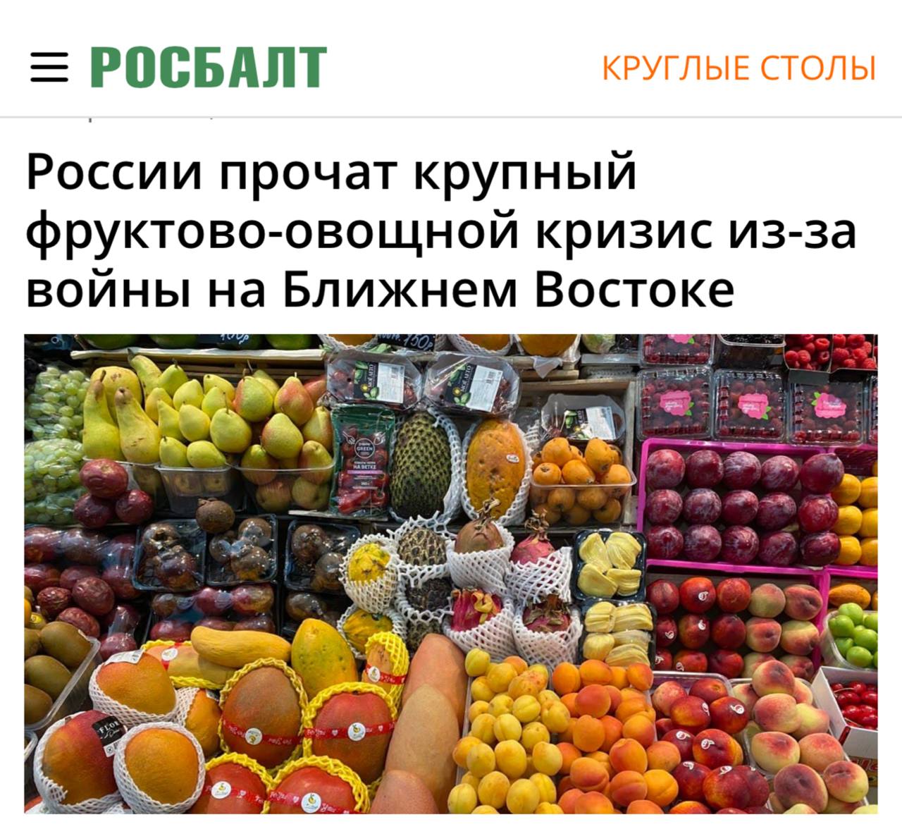 «России грозит крупный фруктово-овощной кризис из-за боевых действий на Ближнем Востоке, что приведет к росту цен на 60% и исчезновению отдельных позиций с полок.